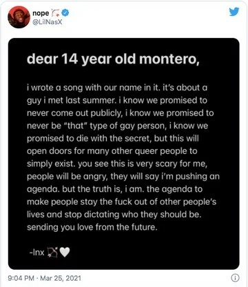 Story by Holt Templeton and Antonio Gomez, photograph via Lil Nas X's "Montero (Call Me by Your Name" music video and Twitter (@LilNasX)